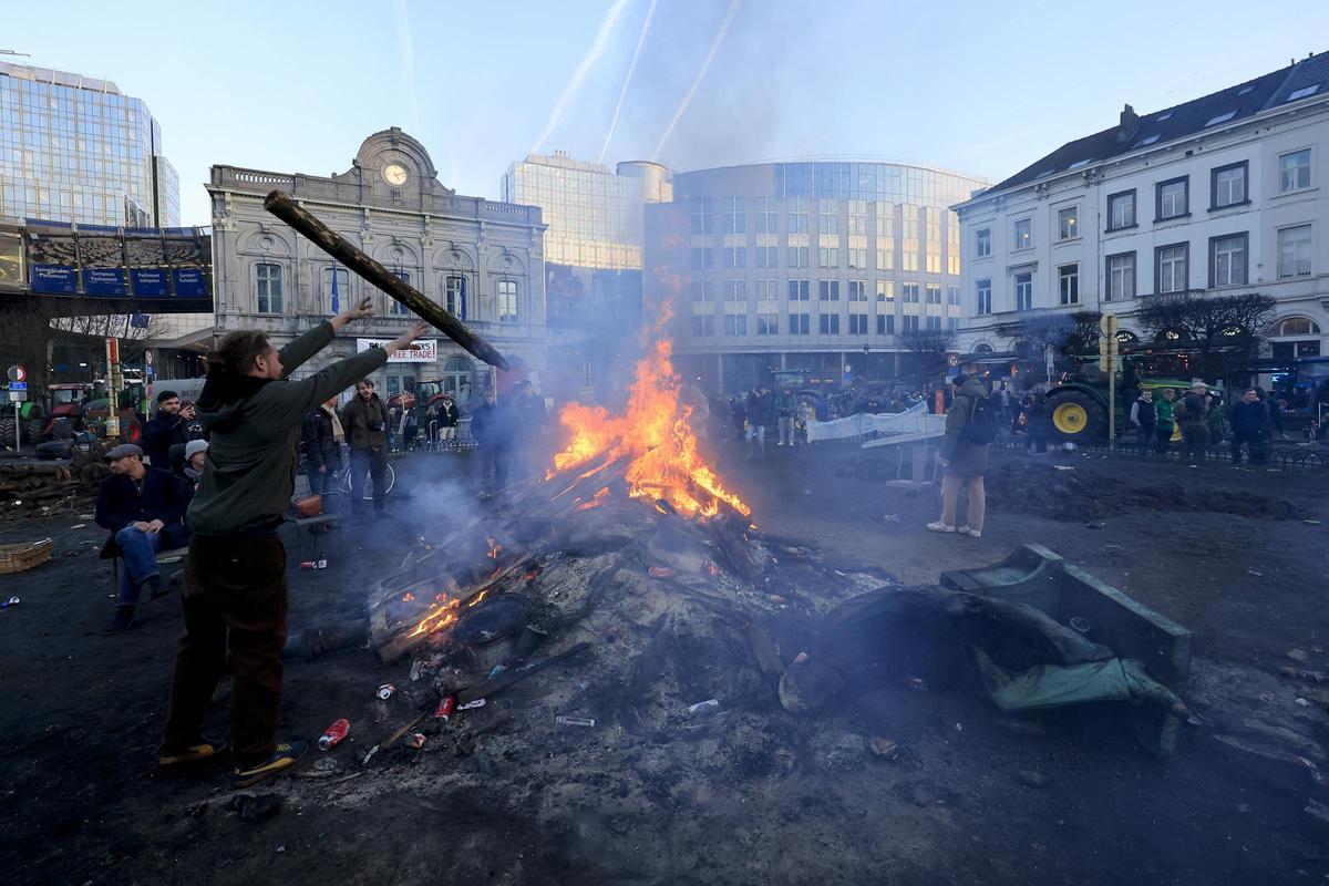 Hoguera en la plaza Luxemburgo de Bruselas, junto al Parlamento Europeo. / GEERT VANDEN WIJNGAERT / AP