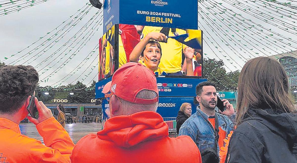 Sumarse a grandes mareas humanas, como las neerlandesas dando tumbos de lado a lado al son del 'Naar links! Naar rechst' (¡Hacia la izquierda, hacia la derecha!), solo es posible en grandes espacios. El himno o grito de guerra de la selección de Ronald Koeman ha convertido en estrechas las avenidas de cualquier ciudad por las que pasan, a saltos y uniformados de 'orange' el color nacional. Para compartir entre masas la pasión por el fútbol lo mejor es la 'fanzone' ante la Puerta de Brandeburgo o la del vecino Reichstag. Ahí están las mejores y enormes pantallas, camisetas oficiales y atributos de los espónsores, entre puestos de comida y bebida unos cuantos euros más caros que en el resto de la ciudad, aunque no prohibitivos.