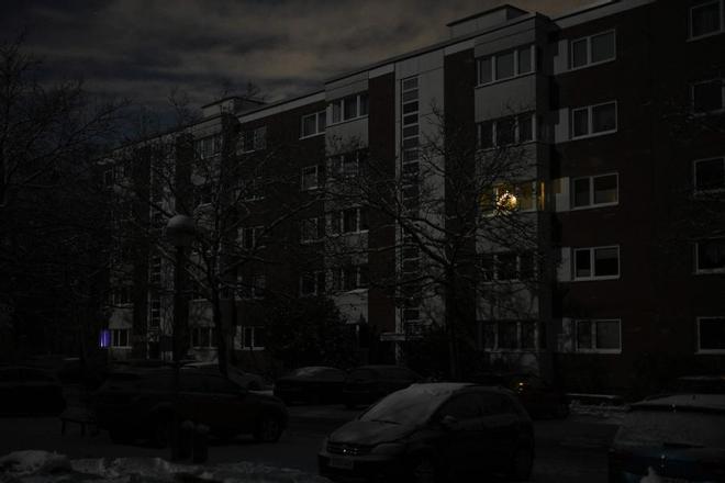Una decoración navideña a batería se ve en la ventana de un edificio residencial en el distrito de Zehlendorf, suroeste de Berlín, tras un corte de luz que dejó sin electricidad a decenas de miles de hogares. / AFP | RALF HIRSCHBERGER